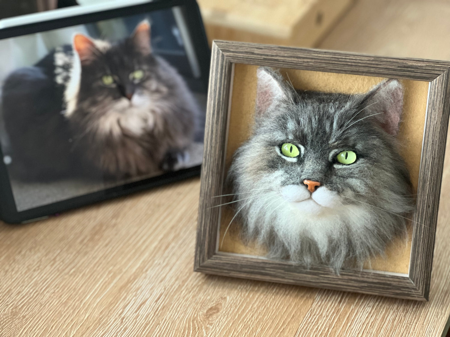 I purchased this as a gift for a family member who has an aging cat, and they were truly touched by the resemblance to their beloved pet. Jesse was great to communicate with and did a fantastic job capturing the likeness of the cat using the photos we sent. Everything came within the time frame I was originally told and was a very smooth process.